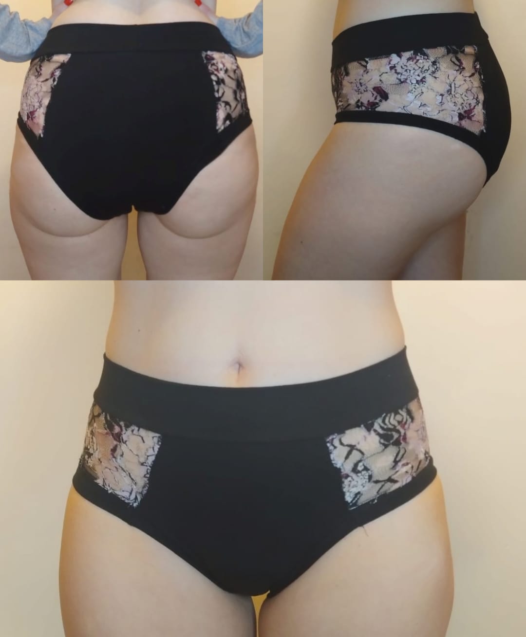 ♥ Están confeccionada con tela algodón con lycra, tela siempre seco en contacto con la vulva, que hace que los líquidos pasen a los absorbentes y te mantengas siempre seca