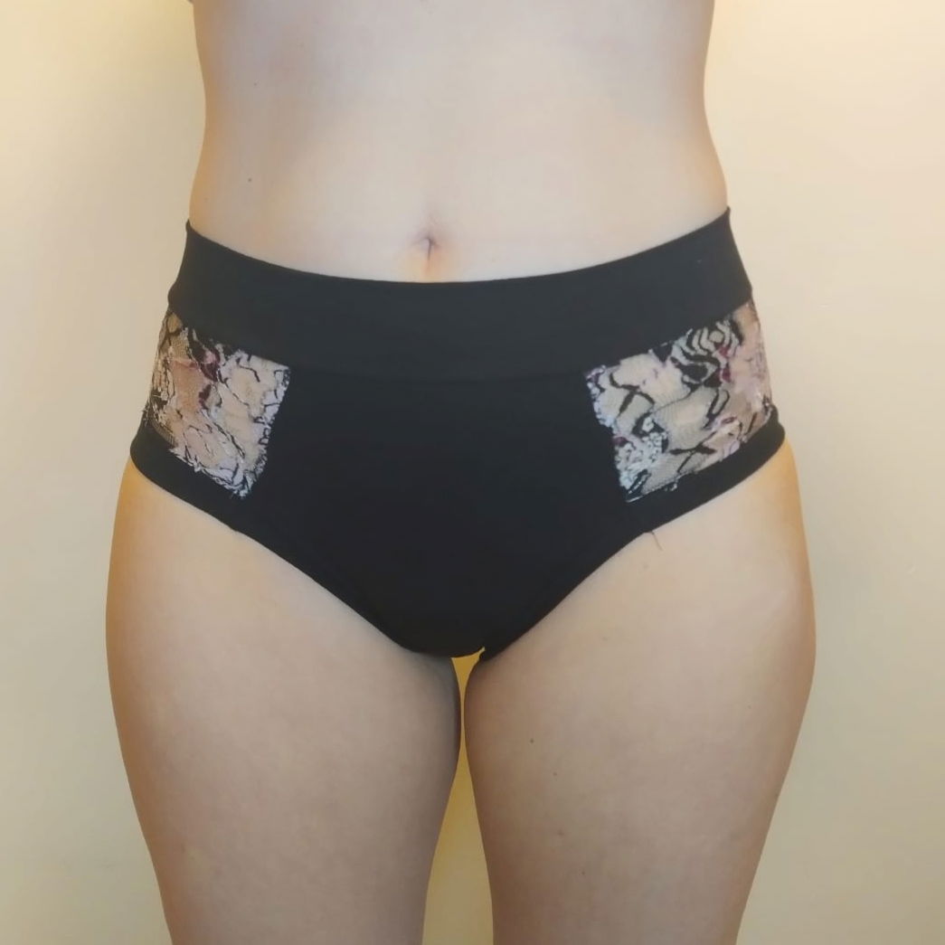 ♥ Están confeccionada con tela algodón con lycra, tela siempre seco en contacto con la vulva, que hace que los líquidos pasen a los absorbentes y te mantengas siempre seca